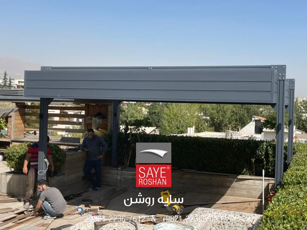 موقعیت پروژه : این پرگولا با سایبان برقی بر روی روف گاردن یک منزل مسکونی ویلایی در شهرک غرب اجرا شده است. با توجه به بافت آمریکایی این شهرک و قرارگیری پارکهای فراوان و خیابانهای عریض و مشجر از آب و هوای مطلوبی برخوردار است. علاوه بر برخورداری از این آب و هوای لطیف همجوار پارکها، به علت موقعیت توپوگرافی خاص این منطقه و بافت کم تراکم آن این بام ویلایی نیز از ویو گسترده و زیبایی برخوردار است.
