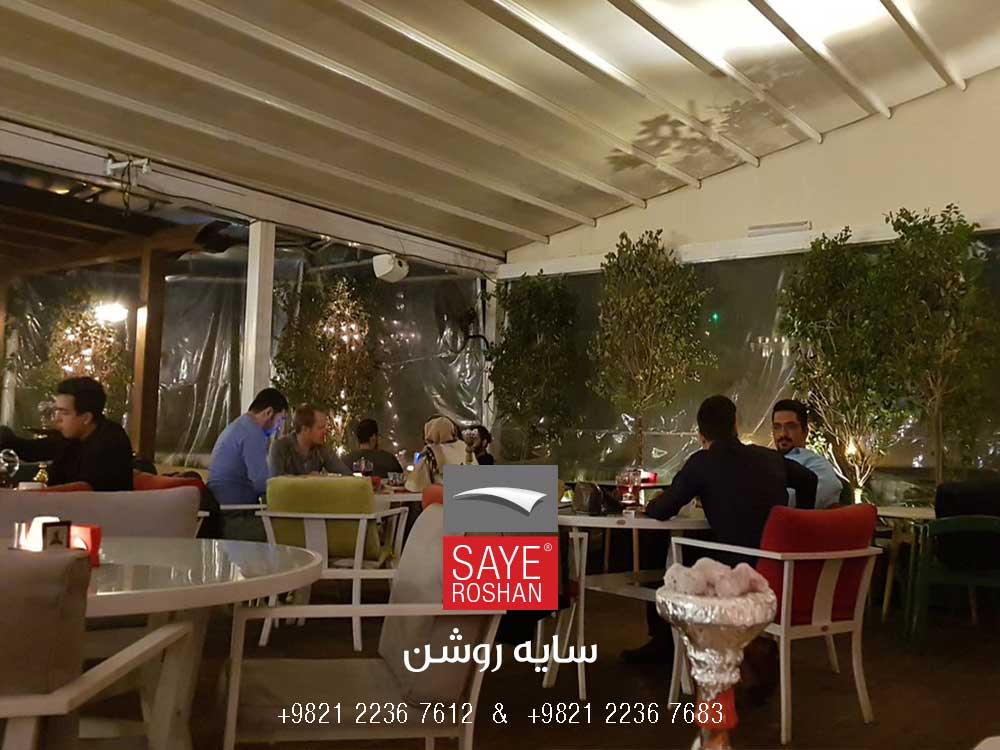 نیاز پروژه: با توجه به استقبال بی نظیر مردم از رستورانهای موجود در خیابان پاسداران، مجموعه رستورانی کاپیتان لانژ با دو طبقه و یک بام احداث شد. هر دو طبقه رستوران با سقفهای بلند و دکوراسیون داخلی فوق العاده و استفاده از المانهای بسیار خاص فضاهای ویژه و منحصر بفردی در نظر گرفته شده بودند. از این رو نیاز شدیدی به مسقف کردن فضای بام هم به جهت تجهیز دکوراسیون و هم برای ایجاد فضای نشیمن مناسب برای میهمان احساس میشد. برای تامین این نیازها اجرای سقف به دو صورت متحرک و ثابت برای این رستوران در نظر گرفته شد. سقفهای ثابت این مجموعه به صورت سازههای مخروطی در کنار یکدیگر شکل گرفتند و همجوار سقف متحرک فضاهای متنوعی را ایجاد کردند. در این پروژه برای اجرای سایبان برقی بام رستوران با توجه به تکیهگاه موجود در یک سمت، ما ساختار سازهای سایانه از انواع ساختارهای سایه روشن را انتخاب کردیم.