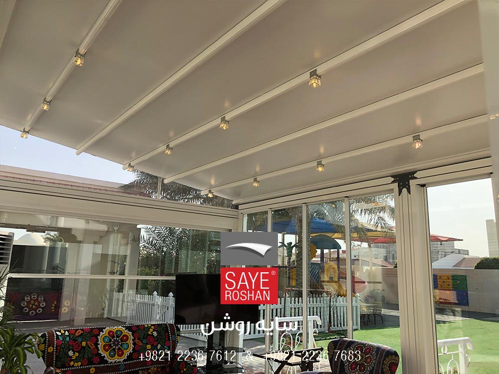 سایبان متحرک ویلا ناصرالعیده با ساختار سازه ای پاولیون