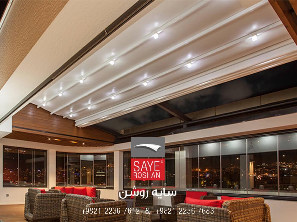 معرفی حالت و مشخصات سقف جمع شونده  :سیستم نصب سقف جمع شونده روفگاردن بانگ گردشگری به صورت یک شیب با عنوان پاولیون بوده است. درمیان ساختارهای سازه ای سایه روشن، پاولیون مناسبترین حالت برای ایجاد یک اتاق محصور و مستقل در فضاهای عاری از هرگونه تکیه گاهیست.