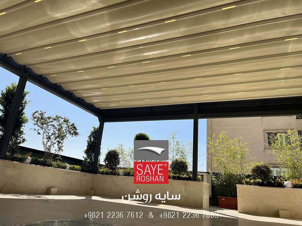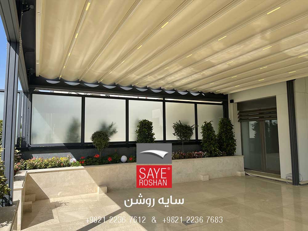 سقف متحرک پارچه‌ای تراس واحد اداری الهیه