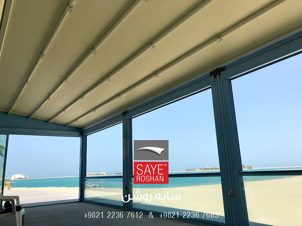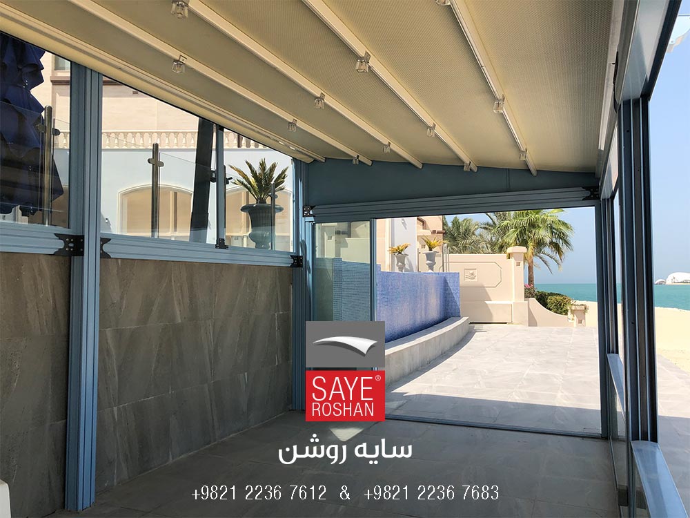سقف متحرک پارچه‌ای ویلا مسکونی