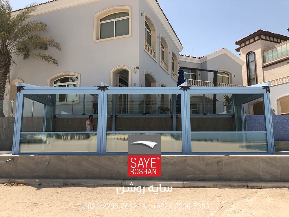 سقف متحرک پارچهای و پنجره کنترلی ویلا و سیستمهای متحرک شیشه ای مسکونی اقای شیخ محمد آل ثانی در سال 1397 به منظور افزایش زیربنا و قابلیت استفاده از فضای باز طراحی و اجرا گردید. برای پوشش دیواره های این اتاقک، تعداد سه عدد سیستم پنجره ی گیوتینی به ارتفاع 2.5 متر* عرض 3.3 متر به مساحت 24.75 مترمربع در این پروژه اجرا گردیده است.